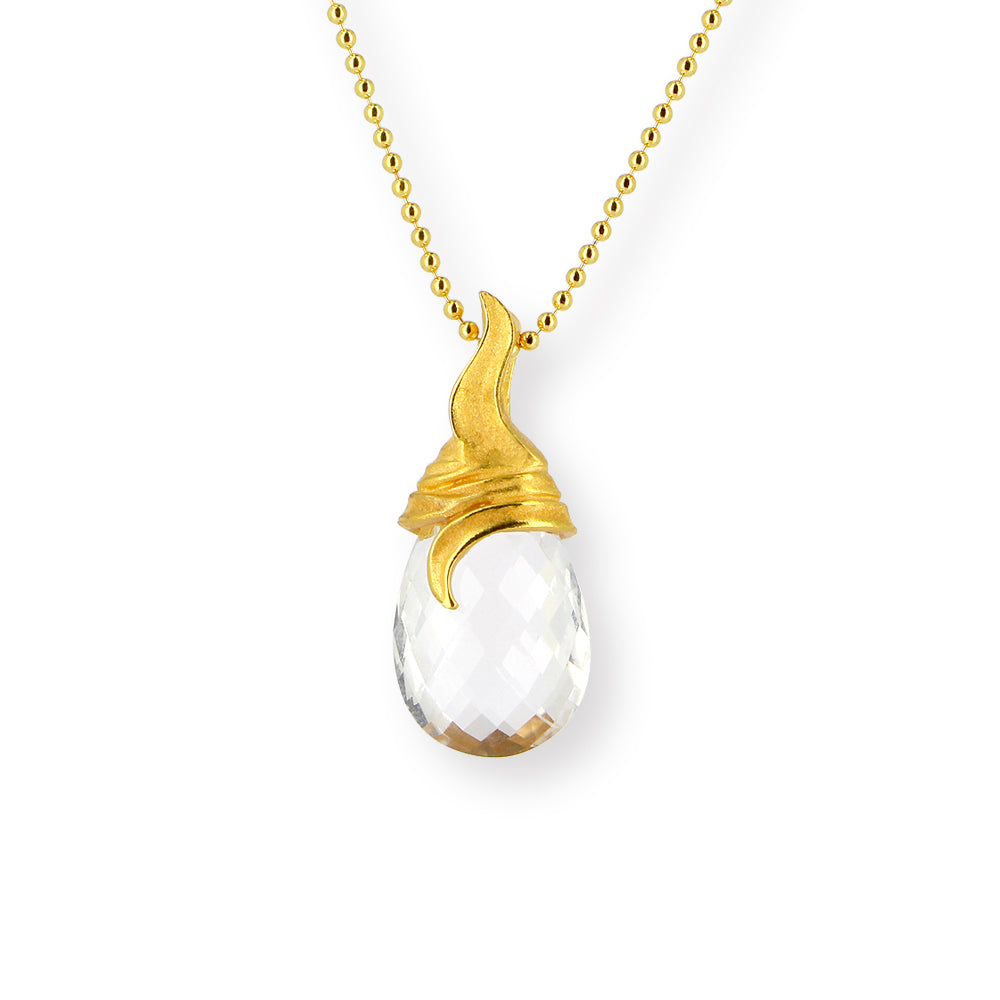Gräser kleiner Anhänger aus Silber goldplattiert mit facettiertem Bergkristallpampel