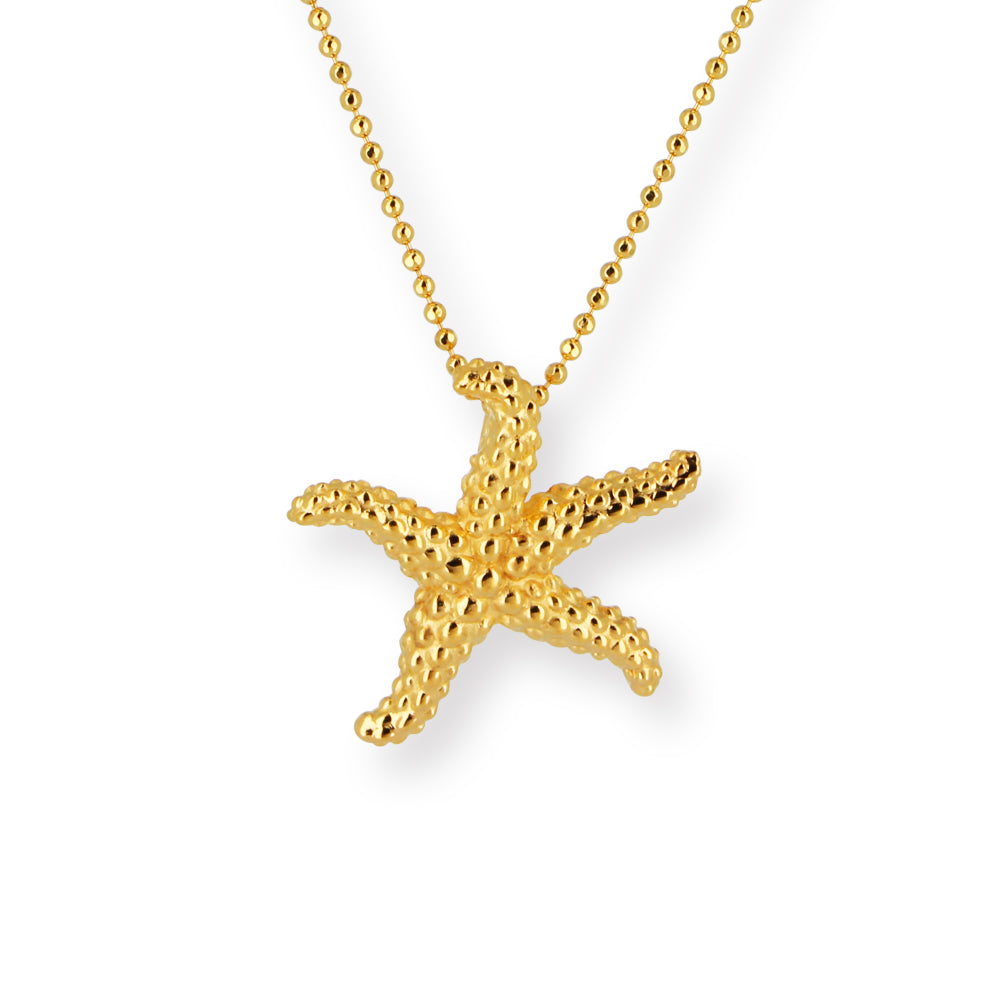 Meeresrauschen, kleiner Seestern Anhänger aus Silber goldplattiert. Der Anhänger hat eine Höhe von ca. 22 mm und eine Breite von ca. 22 mm.