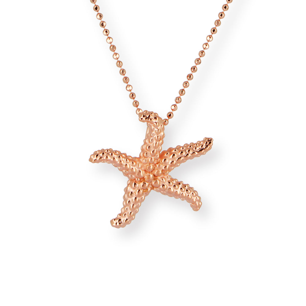 Meeresrauschen, kleiner Seestern Anhänger aus Silber rotgoldplattiert. Der Anhänger hat eine Höhe von ca. 22 mm und eine Breite von ca. 22 mm.