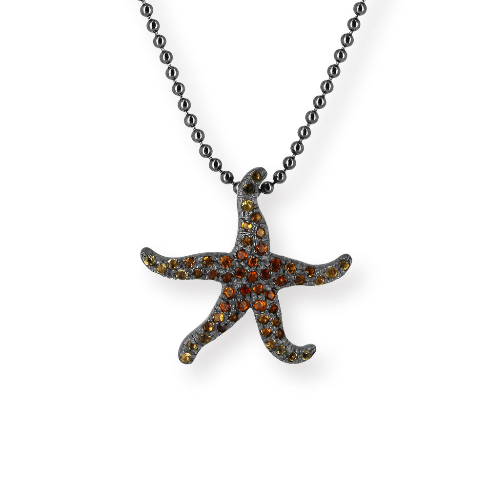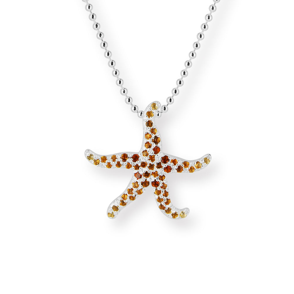 Meeresrauschen, kleiner Seestern Anhänger aus Silber und einem wundervollen, feinen Citrinpavée mit über 50 Citrinen im Farbverlauf.