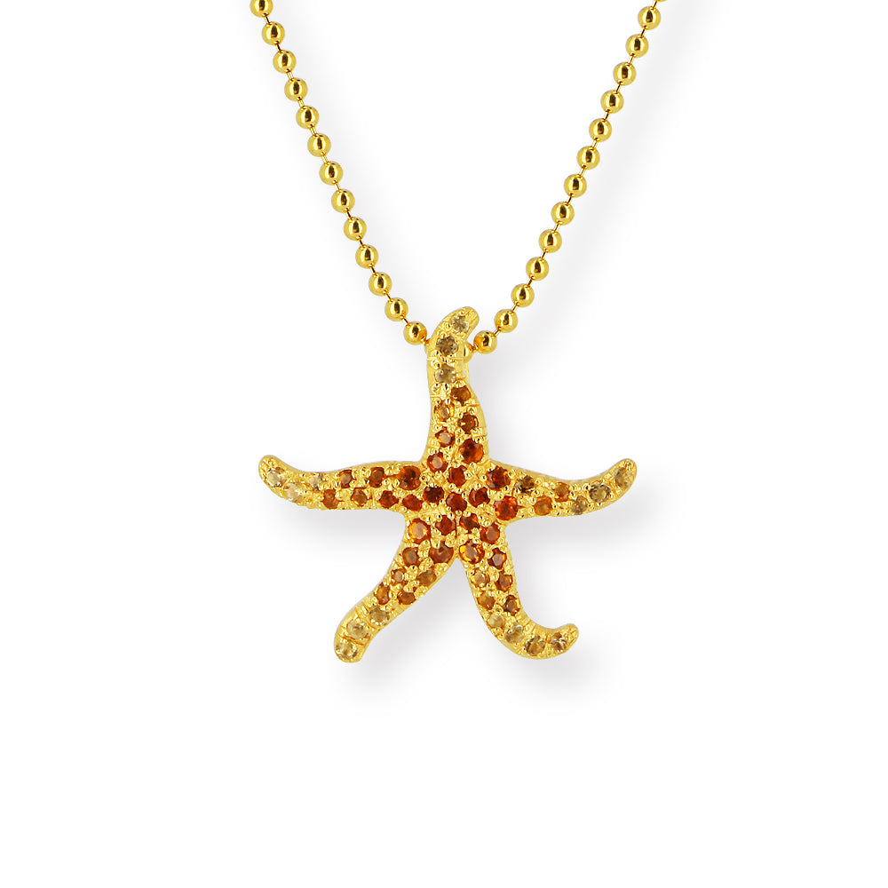 Meeresrauschen, kleiner Seestern Anhänger aus Silber goldplattiert und einem wundervollen, feinen Citrinpavée mit über 50 Citrinen im Farbverlauf.