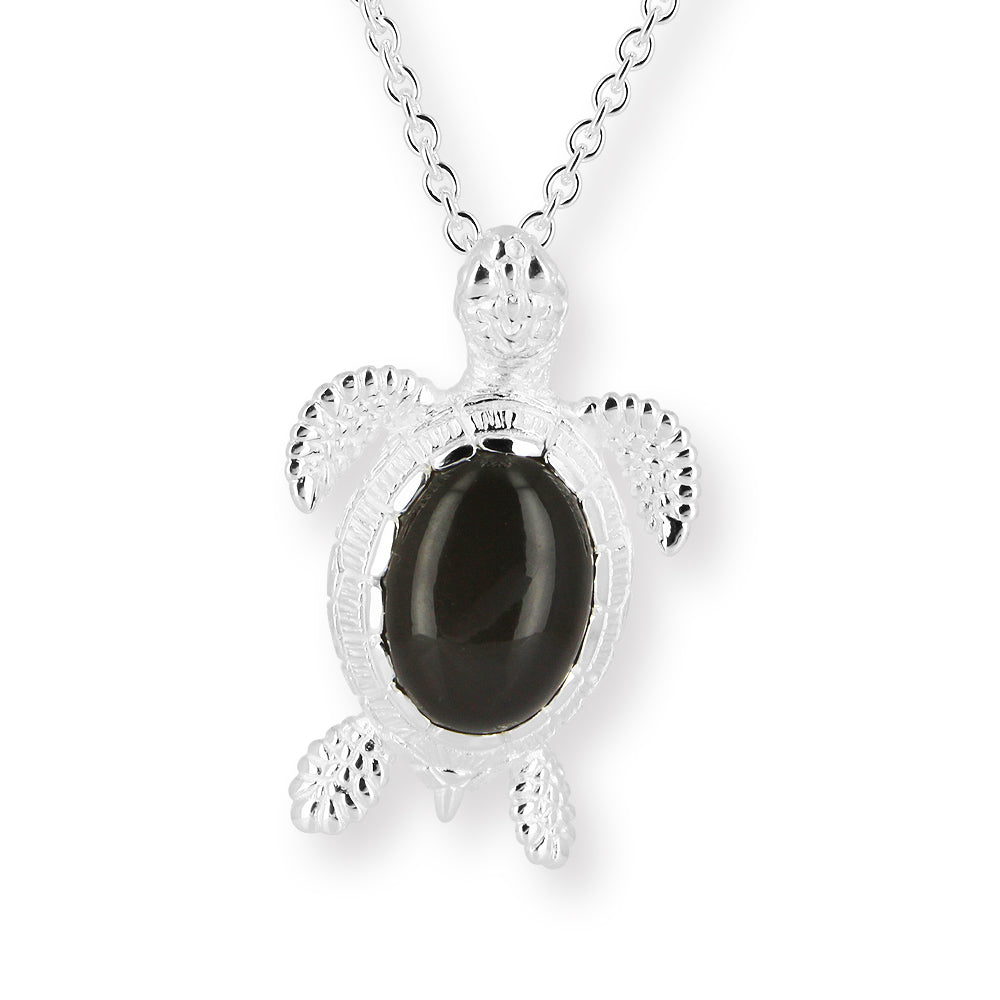 Meeresrauschen, mittlerer Turtle Anhänger Theobald aus Silber mit einem wundervoll, schimmernden dunkelgrauen Mondstein (22 x 17 mm).