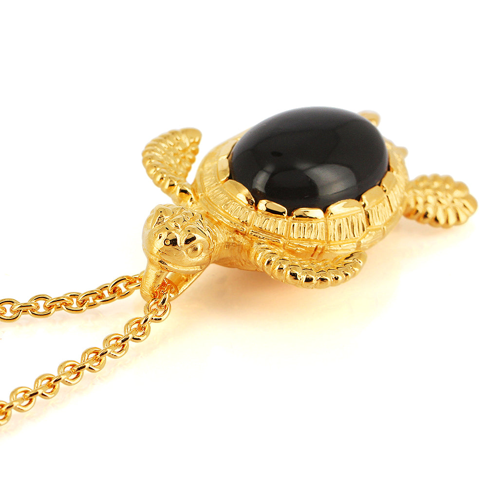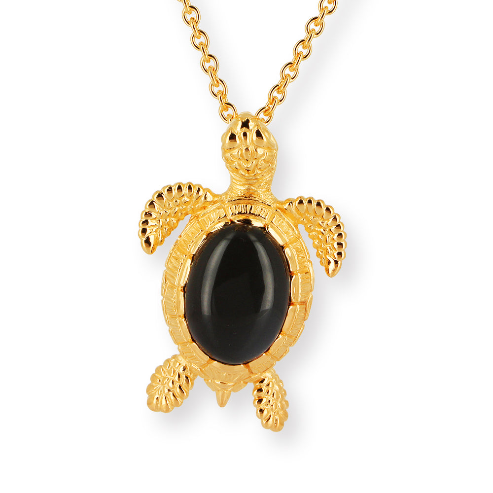 Meeresrauschen, mittlerer Turtle Anhänger Theoblald aus Silber goldplattiert mit einem wundervoll, schimmernden dunkelgrauen Mondstein (22 x 17 mm).