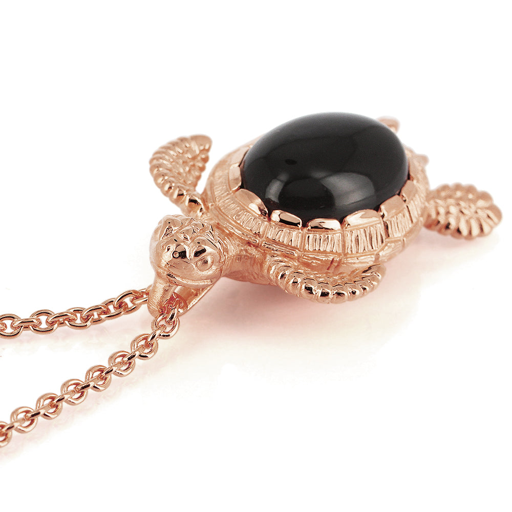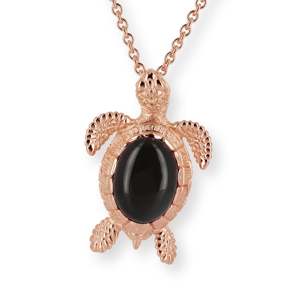 Meeresrauschen, mittlerer Turtle Anhänger Theobald aus Silber rotgoldplattiert mit einem wundervoll, schimmernden dunkelgrauen Mondstein (22 x 17 mm).