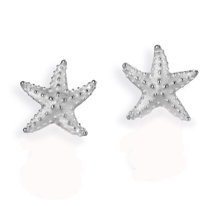Neptuns Garden große Seestern Clipohrstecker aus Silber