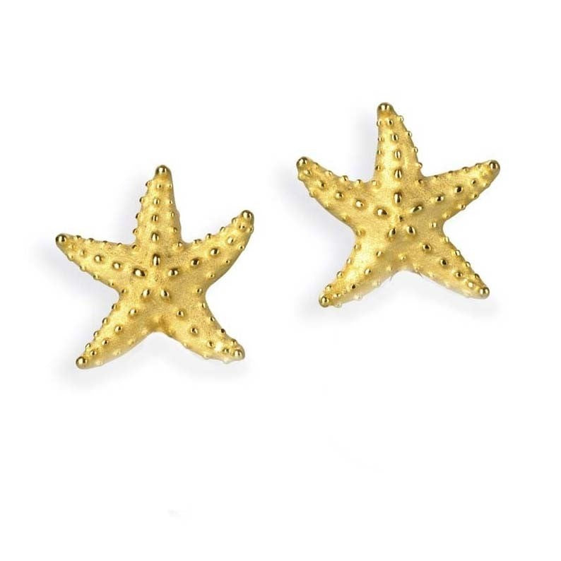 Neptuns Garden große Seestern Clipohrstecker aus Silber goldplattiert