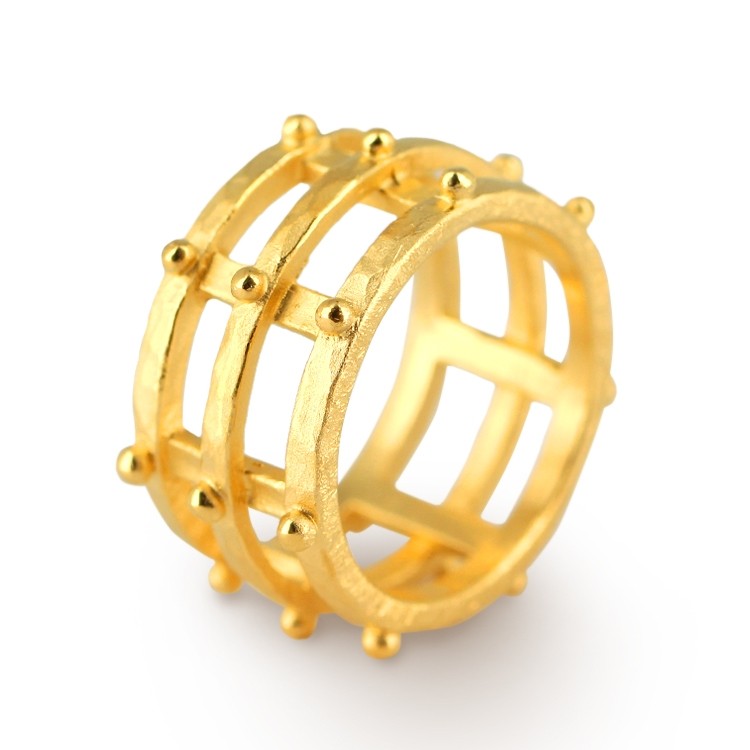 Eiserne Jungfrau, kleiner Ring aus Silber goldplattiert.
