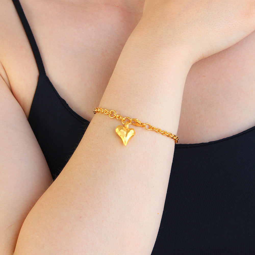 Heartbreaker Ankerketten Armband mit Herz aus Silber goldplattiert in der Länge 20 cm