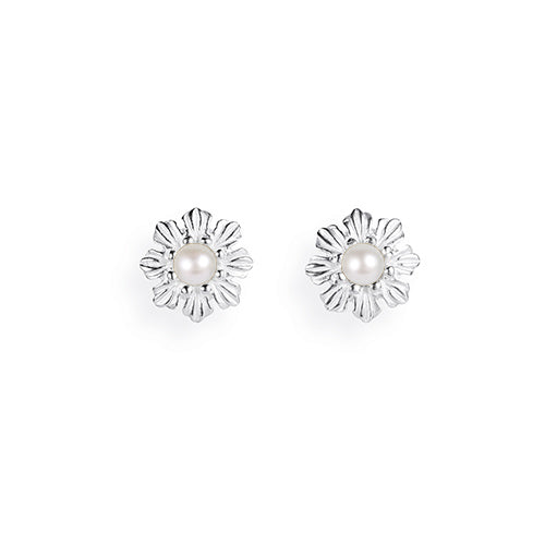Queen Lisbeth, kleine Blüten Ohrstecker aus Silber mit Süßwasserperle.