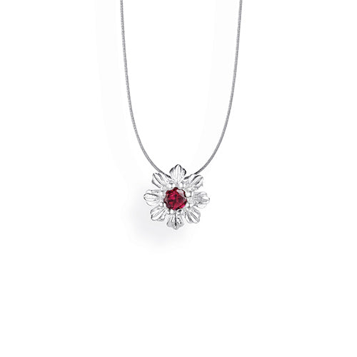 Queen Lisbeth, kleiner Blüten Anhänger aus Silber für Stahl mit Rhodolith.