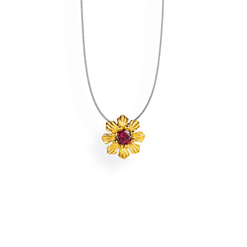 Queen Lisbeth, kleiner Blüten Anhänger aus Silber goldplattiert für Stahl mit Rhodolith.