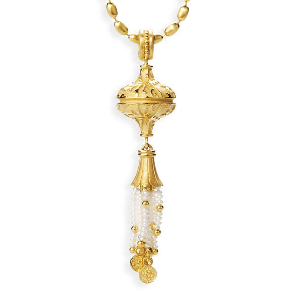 1001 Nacht mittlerer Anhänger aus Silber goldplattiert mit Süßwasserperlquaste und Klappöse