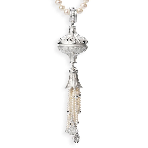 1001 Nacht mittlerer Anhänger aus Silber mit Süßwasserperlquaste und Klappöse