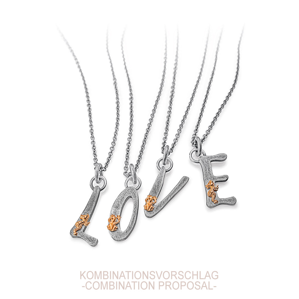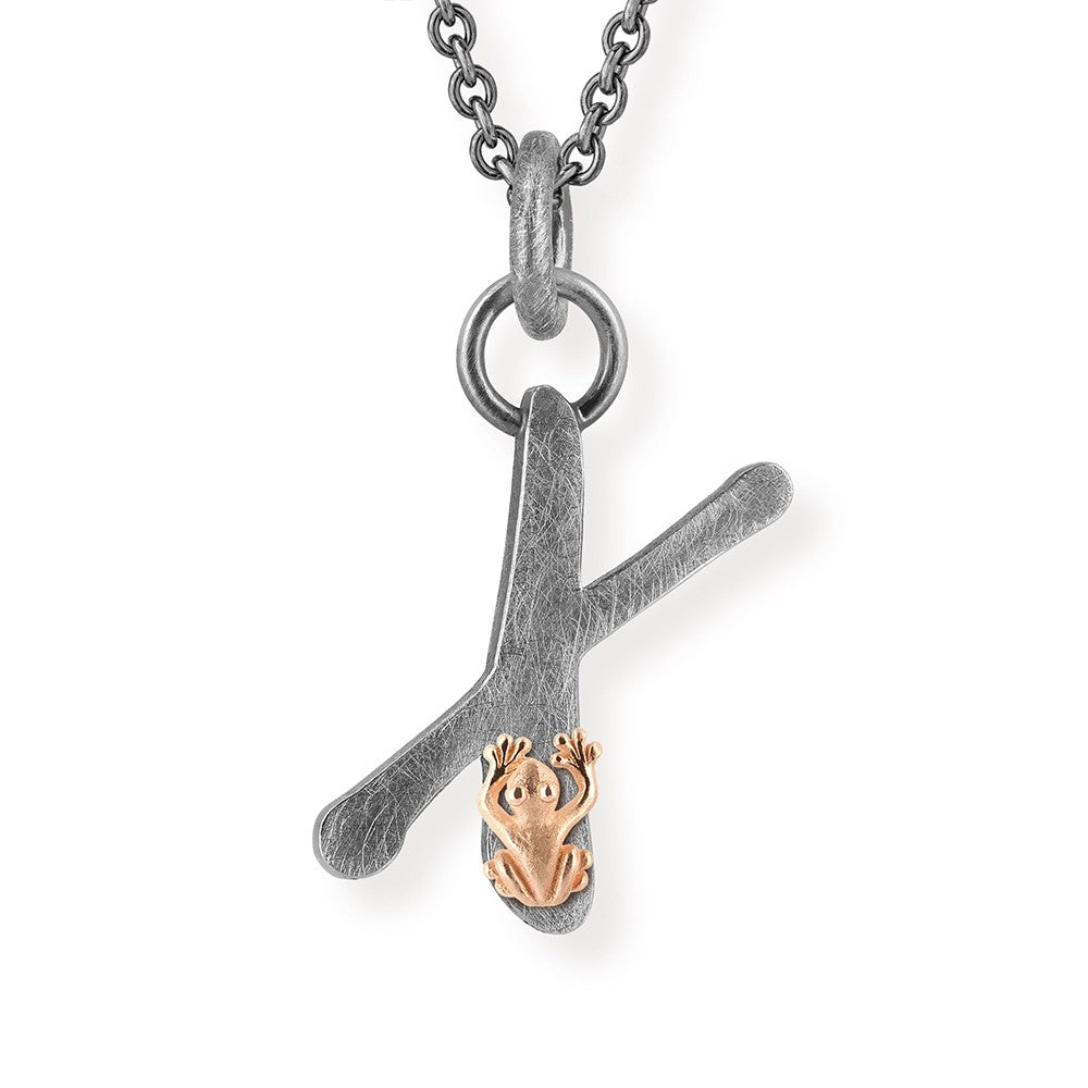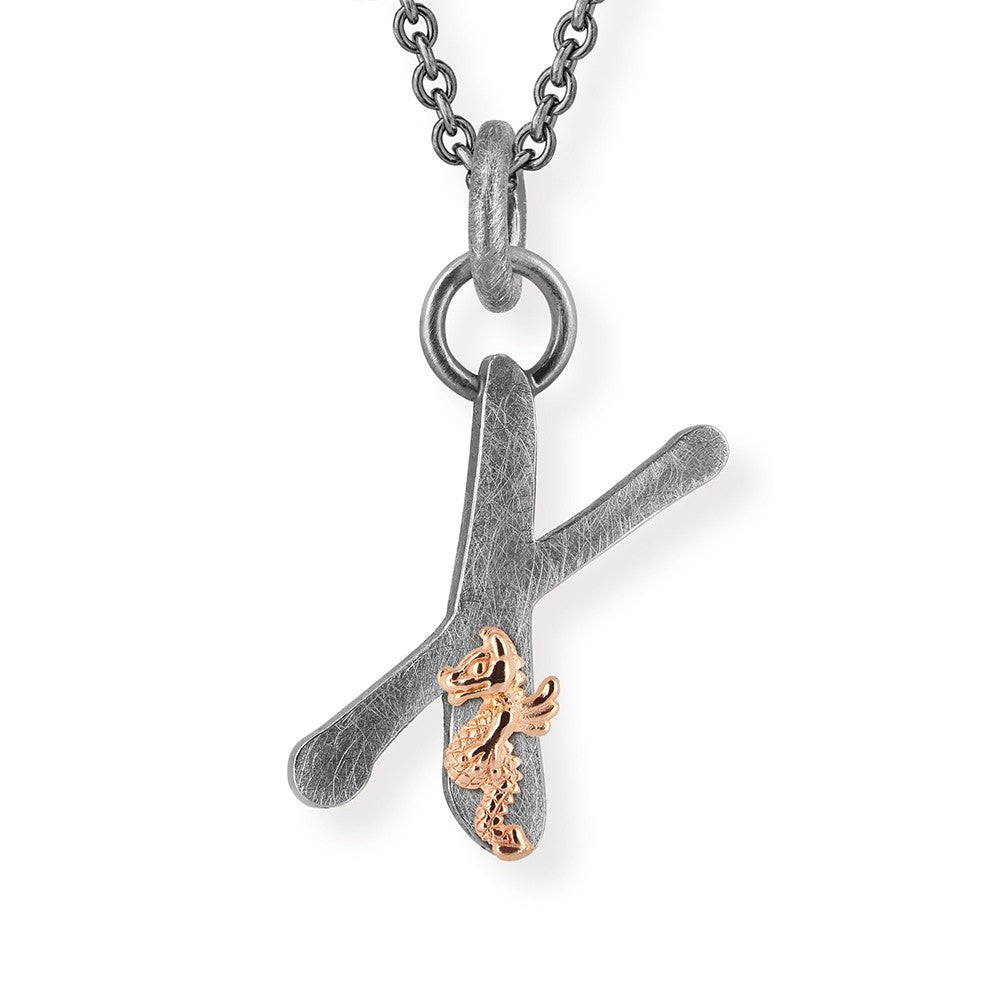 ABC Buchstaben Anhänger X aus Silber im Vintagelook mit Motiv aus Silber rotgoldplattiert