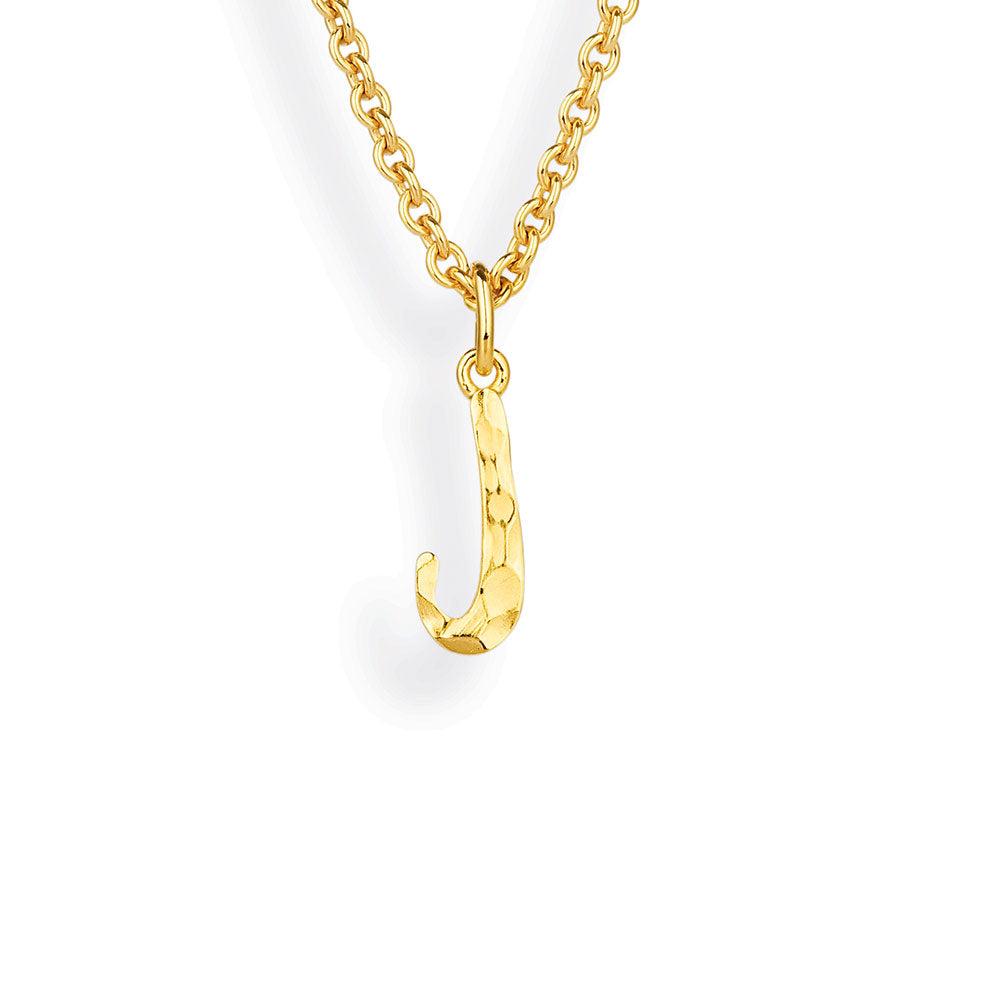 ABC kleiner Buchstabe J Anhänger aus Silber goldplattiert mit geschnitzter Struktur