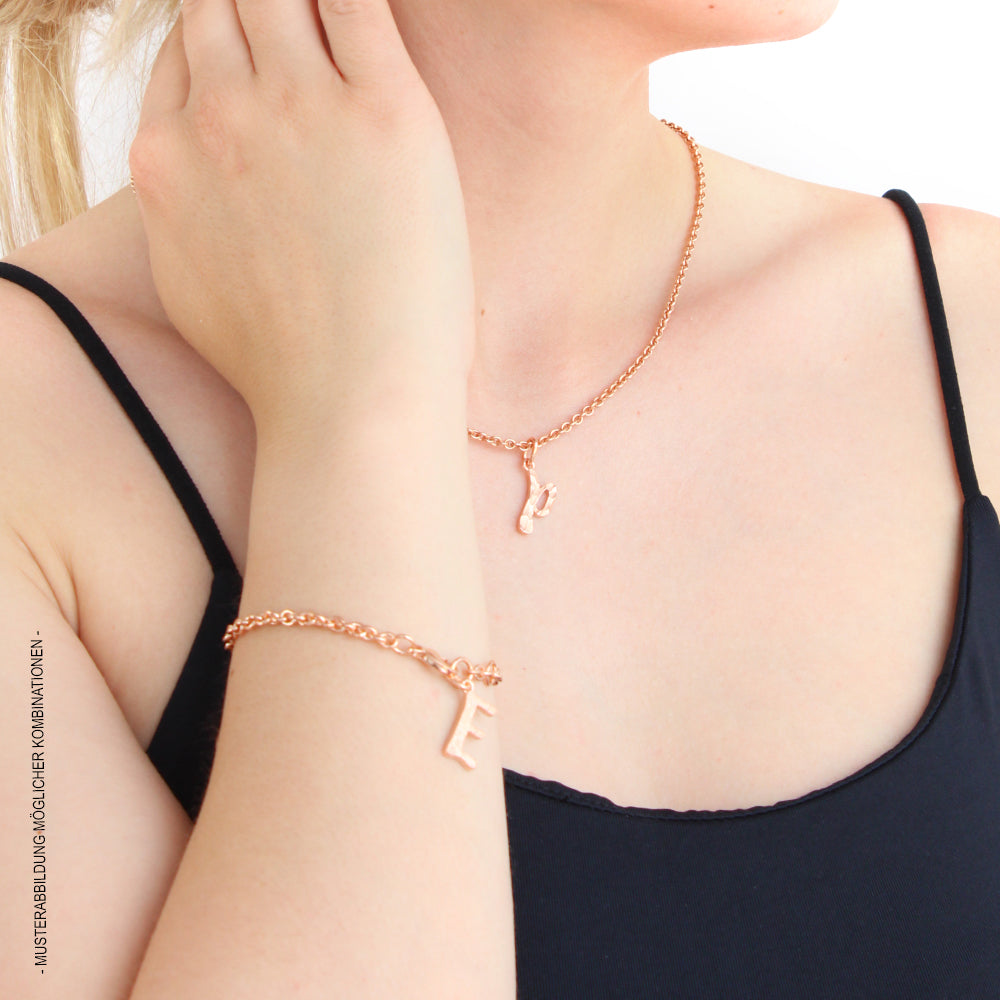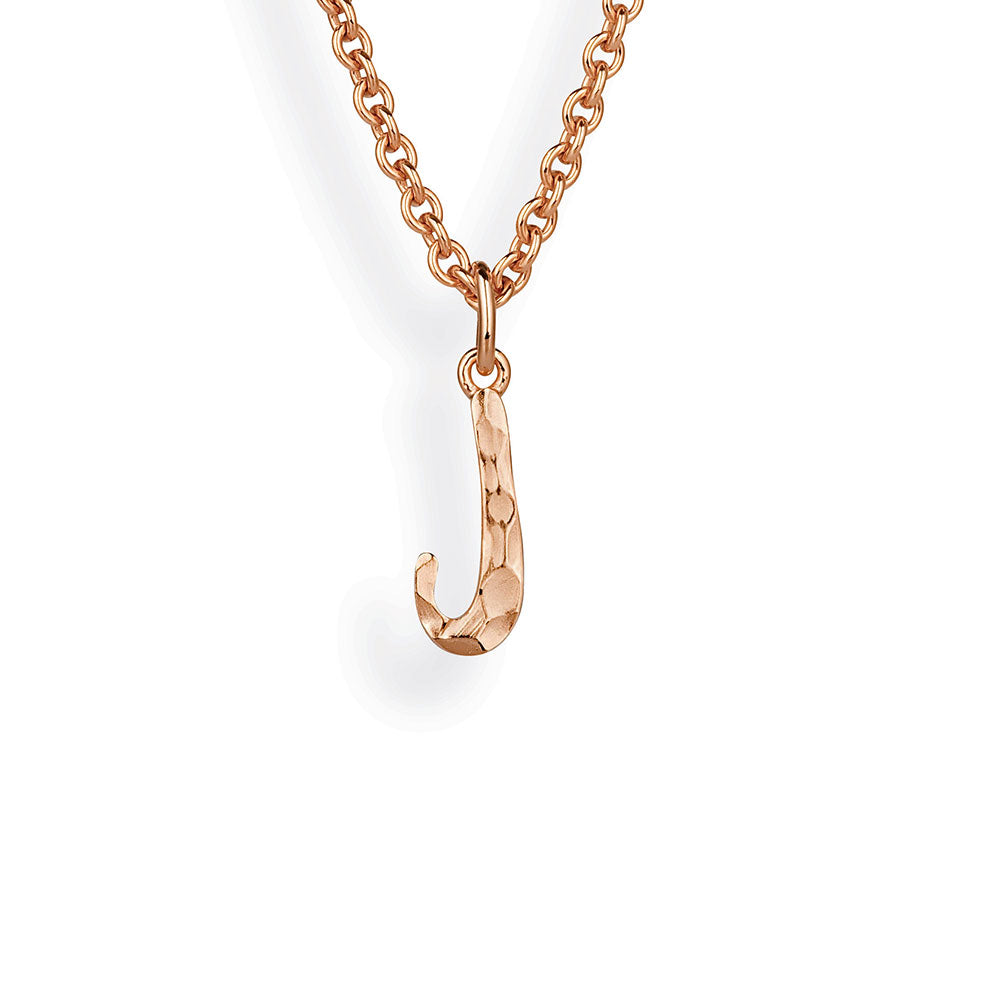 ABC kleiner Buchstabe J Anhänger aus Silber rotgoldplattiert mit geschnitzter Struktur