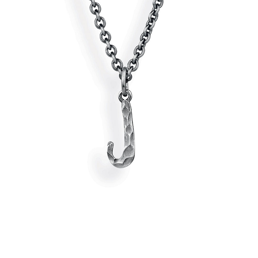 ABC kleiner Buchstabe J Anhänger aus Silber im Vintagelook mit geschnitzter Struktur