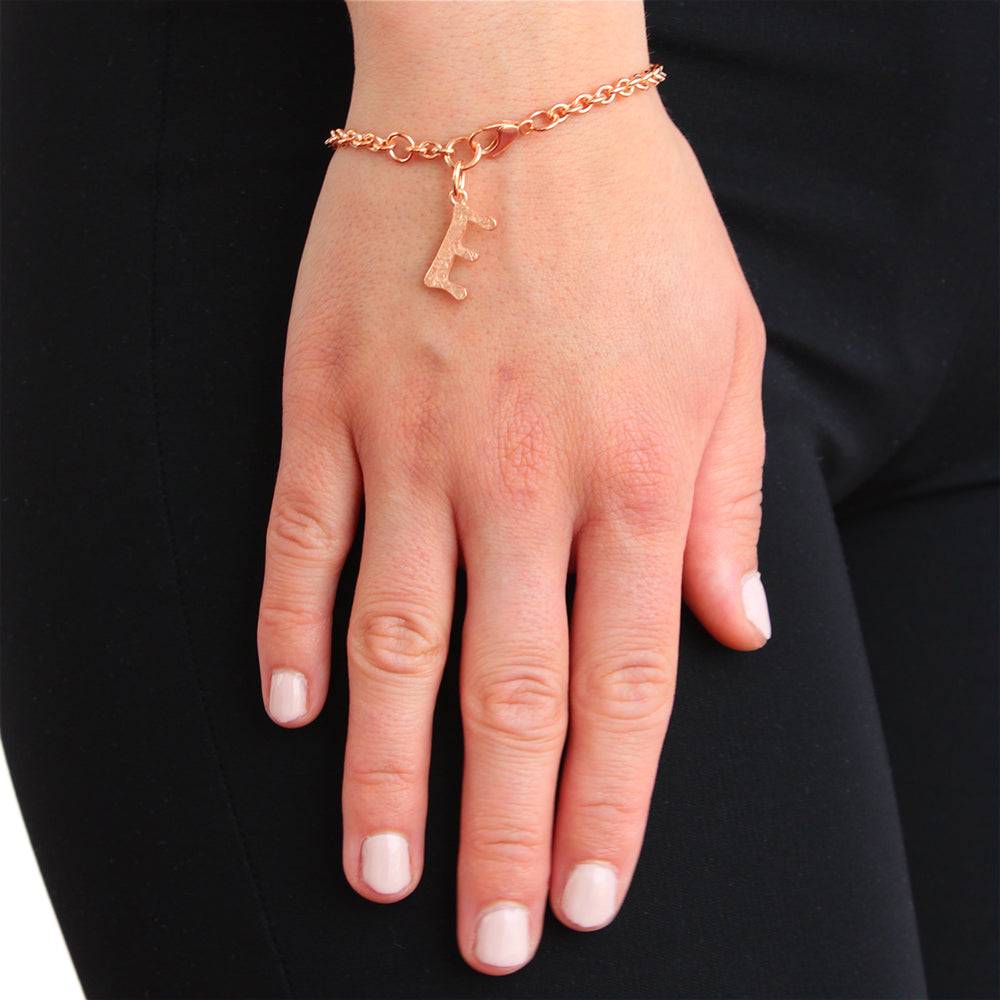 Ankerketten Armband mit Buchstabe Q in eismatt aus Silber rotgoldplattiert mit Karabiner in der Länge 20 cm