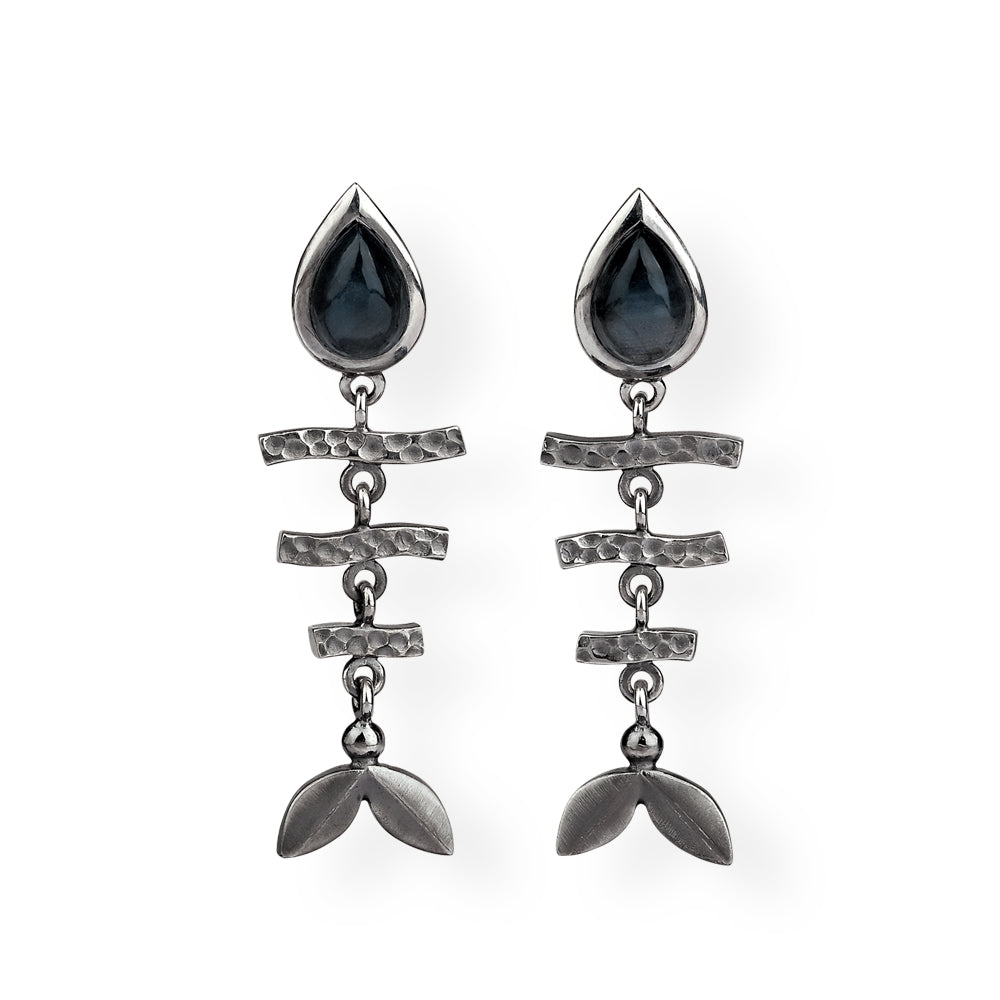 Die schönen, geheimnisvoll blau bis schwarz schimmernden Labradorite in Tropfenform sind glänzend eingefasst. Bei ihrem Anblick träumt man doch gleich von einer Nacht auf dem Meer. Diese Fischlein sind ganz außergewöhnlich und zart, mit geschmeidigen, beweglichen Gräten. Sie träumen davon, mit ihrer neuen Besitzerin endlich alle Weltmeere zu bereisen. Wer angelt sie sich als erste? Zu diesen entzückenden Ohrhängern liefern wir große Poussetten. So lassen sich die frechen Fische besser fixieren und der Druck verteilt sich besser am Ohrläppchen.