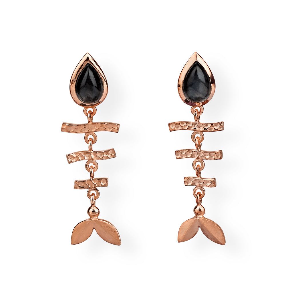 Fischli, Fisch Ohrhänger aus Silber rotgoldplattiert mit Labradorit.