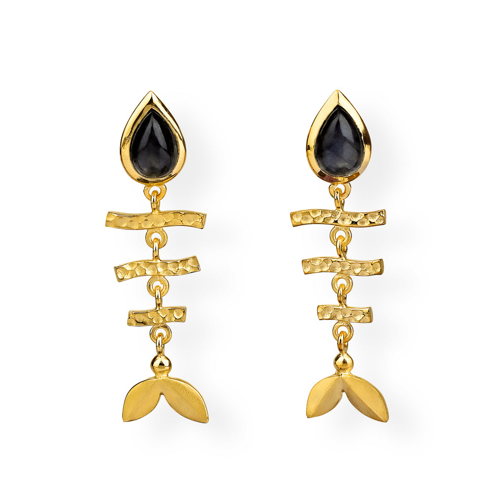 Fischli, Fisch Ohrhänger aus Silber goldplattiert mit Labradorit.