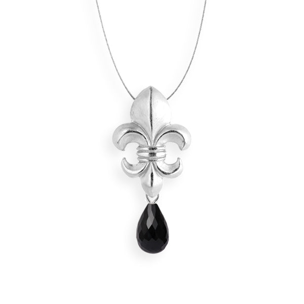 Lilienkönigin, kleiner Lilienanhänger aus Silber mit Onyxpampel.