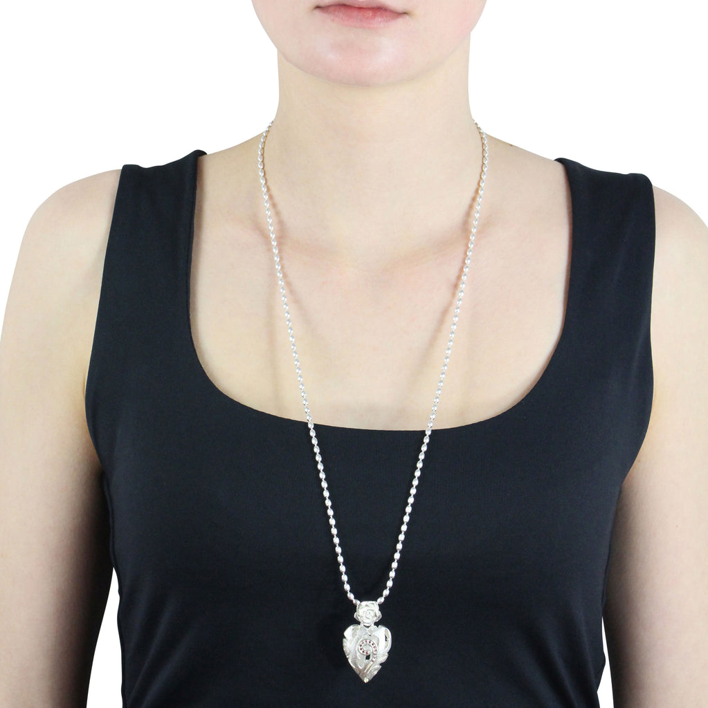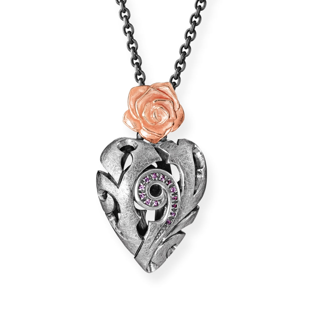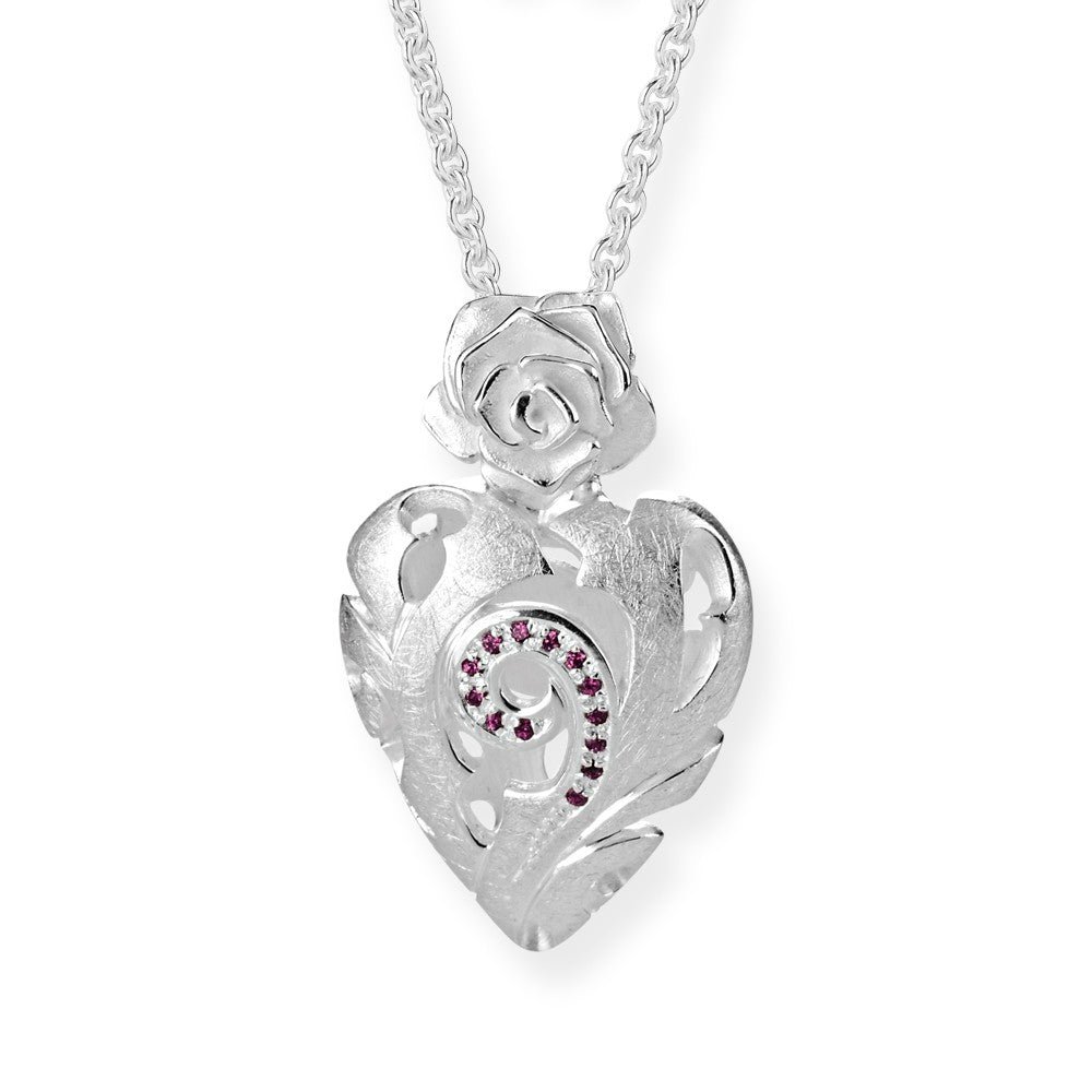 Rose of Antoine, mittlerer Rosen Herz Anhänger aus Silber mit Rhodolithpavée.