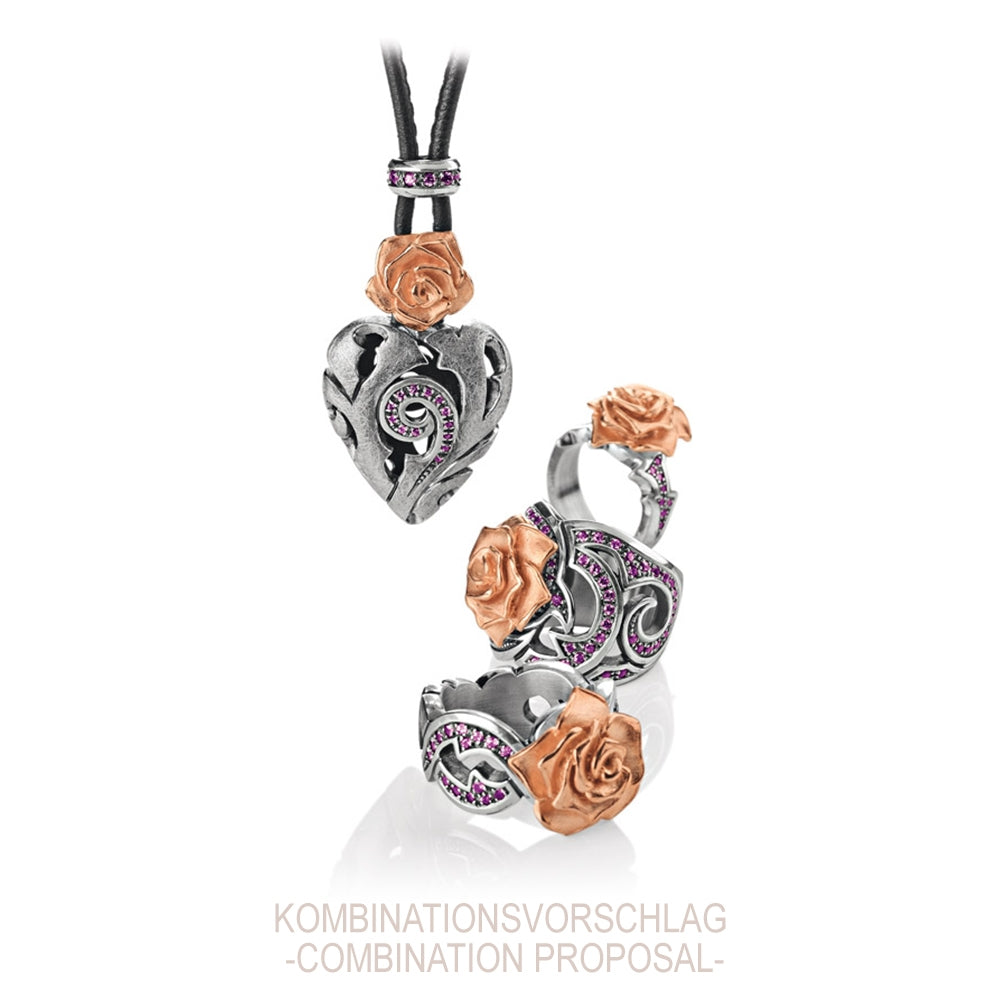 Verführerisch und ausdruckstark, ist dieser romantische Rosen Herz Anhänger eine der schönsten Liebeserklärungen, wie sie nur aus edlen Metallen und natürlich gewachsenen Edelsteinen gefertigt "erblühen" kann.