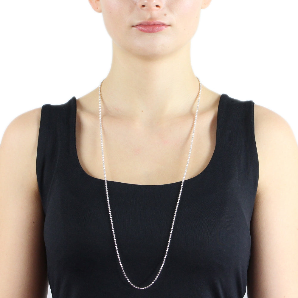 Stabile Kugelkette 2,2 mm aus Silber in der Länge 85 cm Zwischenöse bei 80 cm mit Karabiner