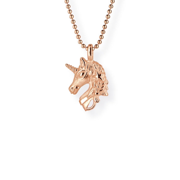 Sternenglanz & Schattentanz, entzückender Mini Einhorn Anhänger aus Silber rotgoldplattiert.