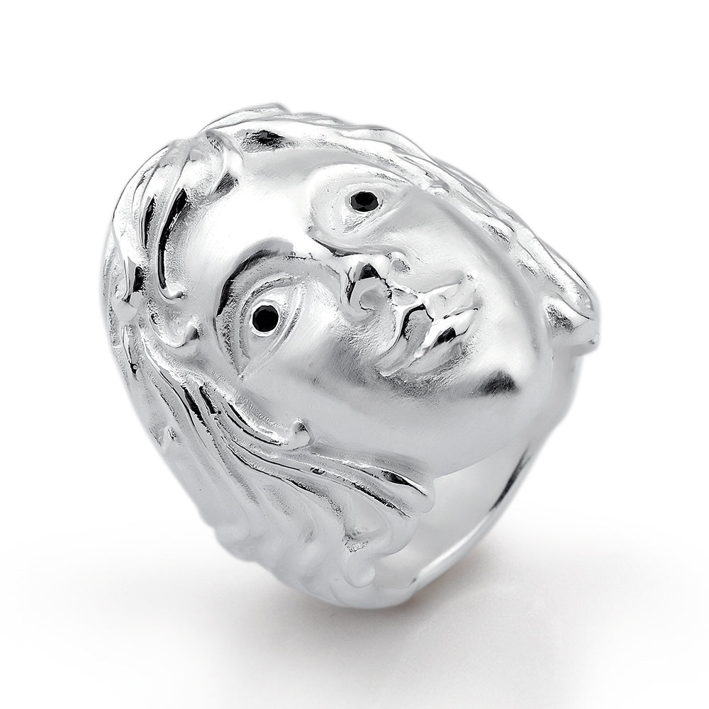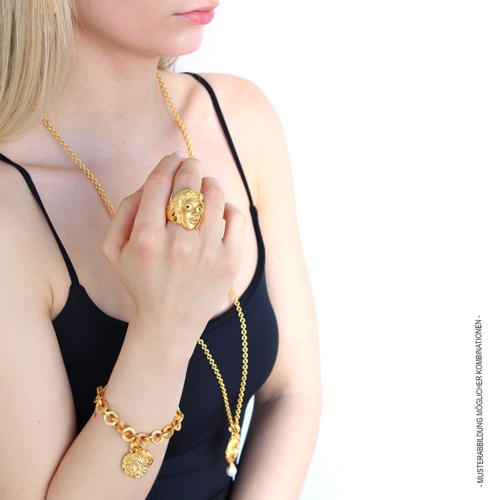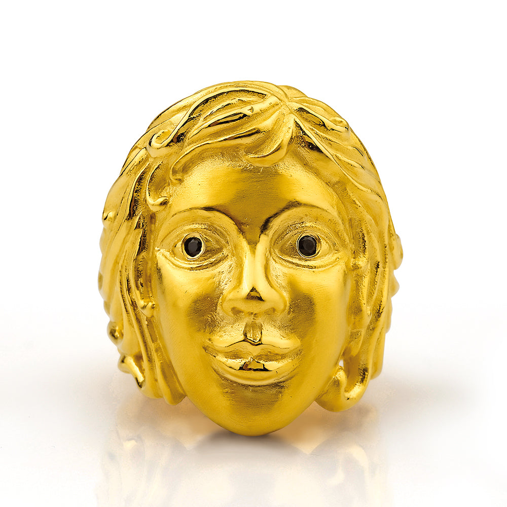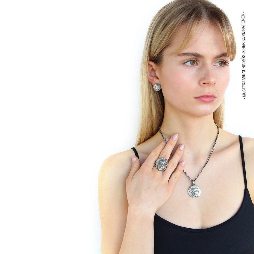 In den Augen strahlen funkelnd schwarze Spinelle. Der Legende nach verzaubert Aphrodite mit ihrer Schönheit und ihrem unwiderstehlichen Liebreiz alle, die ihr begegnen. Doch bei aller Sanftmut kann sie, wie alle Frauen, auch richtig wütend werden, wenn sie gereizt wird. Wir übernehmen keine Garantie, was passiert, wenn Frau diesen Schmuck trägt.... Ein traumhafter Schmuck für alle, die mächtige Ringe mit mystisch antiker Ausstrahlung lieben! Das Schmuckstück kommt frisch aus unserem Atelier, es könnte aber optisch auch aus einer antiken Sammlung stammen.