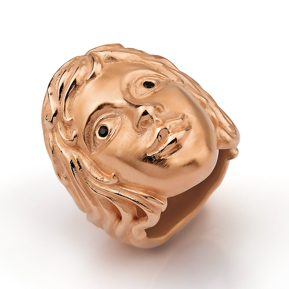 Zeus & Aphrodite, Aphrodite Ring mit schwarzem Spinell aus Silber rotgoldplattiert.