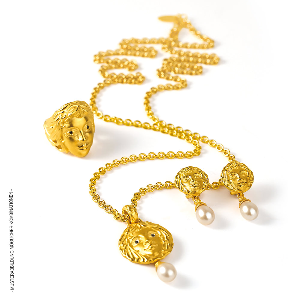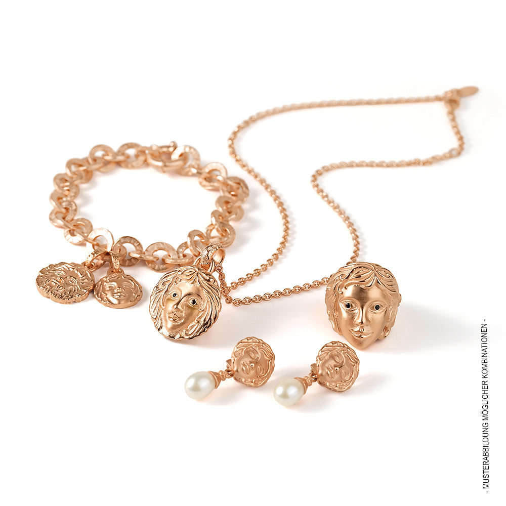 Durch die teils mattierte, teils glänzend polierte Oberfläche kommen die detailverliebten Gesichtszüge der Aphrodite besonders schön zur Geltung und dies verleiht dem wunderbaren Schmuckstück seine überaus lebendige und intensive Ausstrahlung.