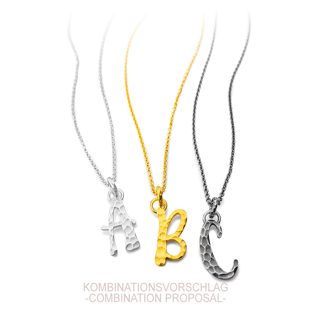 ABC Buchstabe K-Anhänger aus Silber im Vintagelook mit geschnitzter Struktur