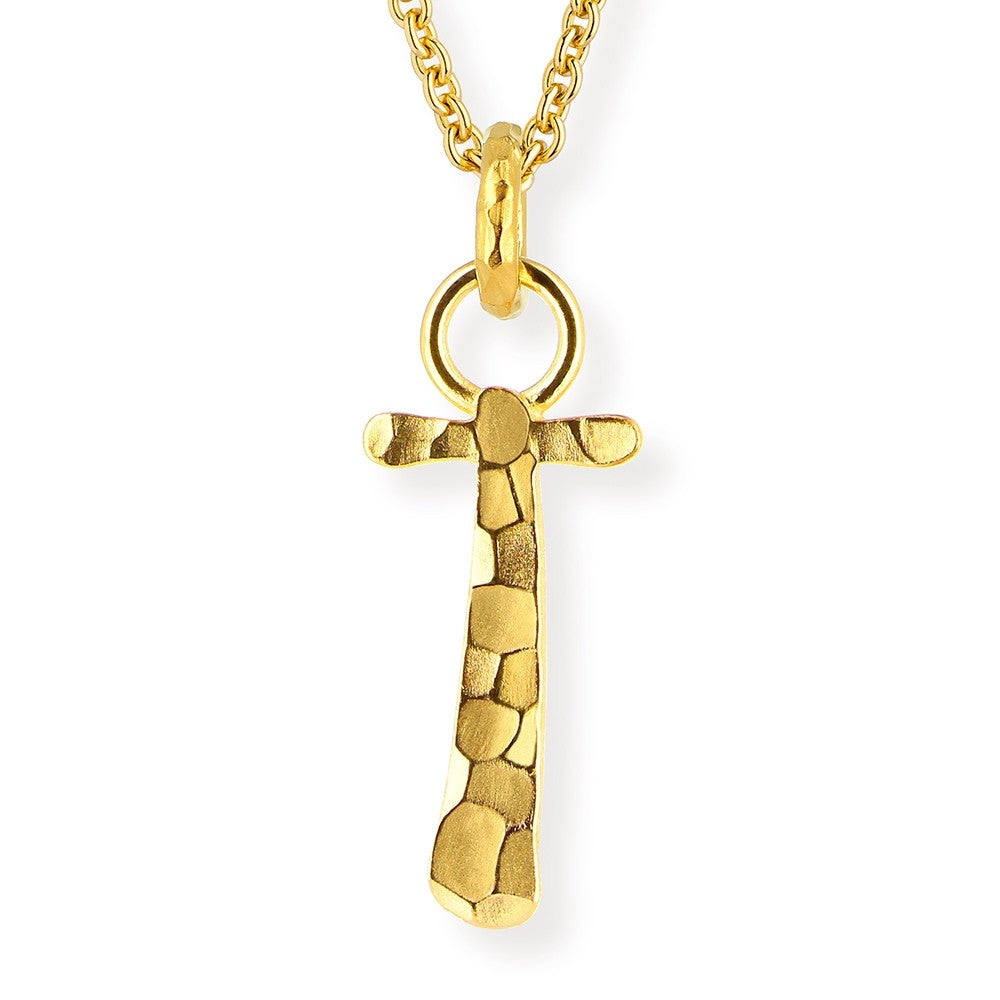 ABC Buchstabe T-Anhänger aus Silber goldplattiert mit geschnitzter Struktur