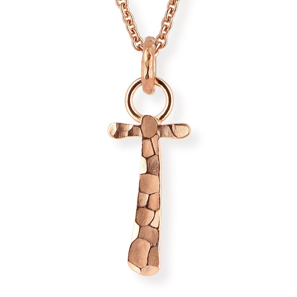 ABC Buchstabe T-Anhänger aus Silber rotgoldplattiert mit geschnitzter Struktur