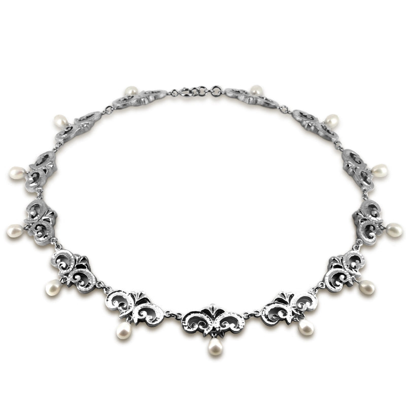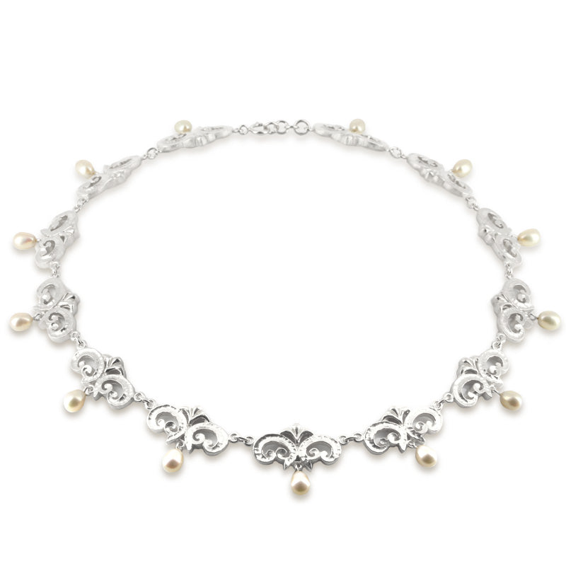 Breakfast at T. Collier aus Silber im Vintagelook mit Süßwasserperlen mit Federringverschluss.