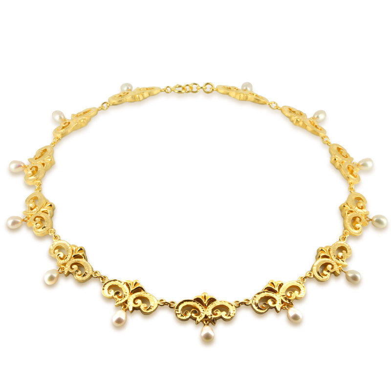 Durch die teils mattierte, teils glänzend polierte Oberfläche kommen die Ornamente besonders gut zur Geltung und verleihen, in Kombination mit den beweglichen Süßwasserperlen, dem schönen Schmuckstück eine romantische Ausstrahlung. Das ist mal wieder ein absolutes TRAUMSTÜCK für alle Königinnen des Alltags!