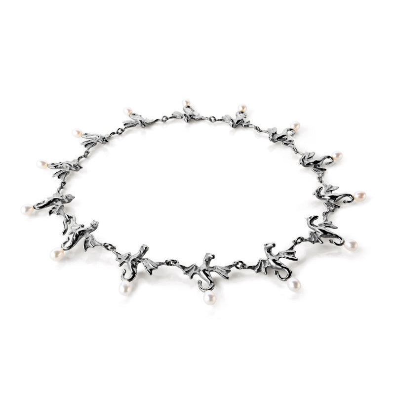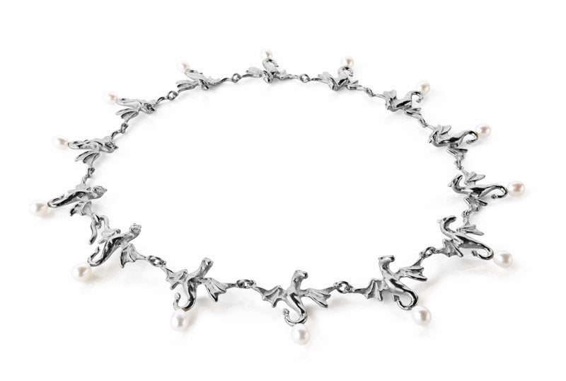 Dragonheart, Collier aus Silber mit Süßwasserperlen in der Länge von 45 cm.