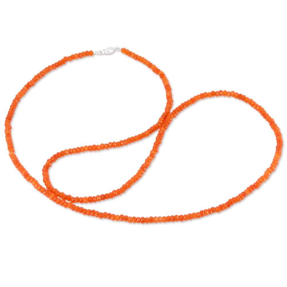 Facettierte Carneol Kette mit Tonnenschloss aus Silber in der Länge 80 cm