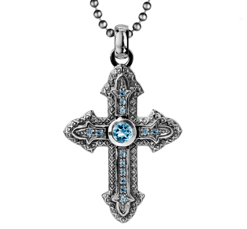 Faith Love und Charity Kreuz Anhänger aus Silber im Vintagelook mit Topas und Topaspavée