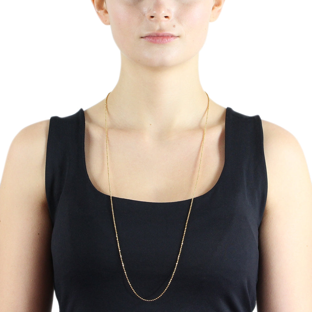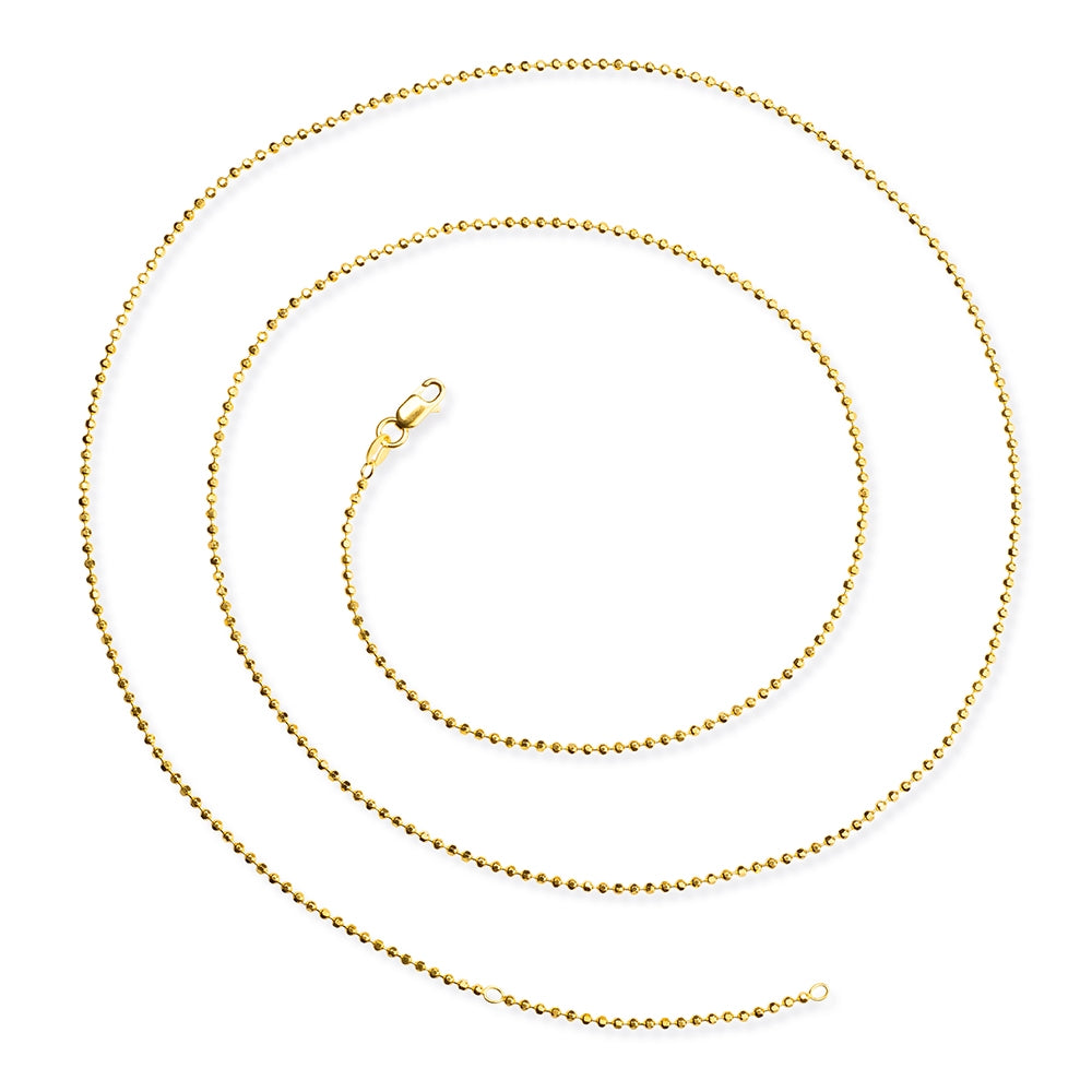 Feine facettierte Kugelkette 1,8 mm aus Silber goldplattiert in der Länge 85 cm Zwischenöse bei 80 cm mit Karabiner