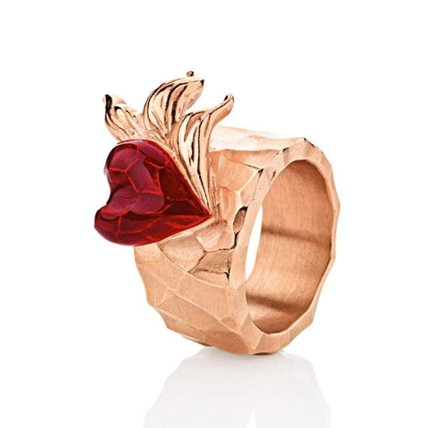 Flammeninferno großer Ring aus Silber rotgoldplattiert mit rotem Brandlack