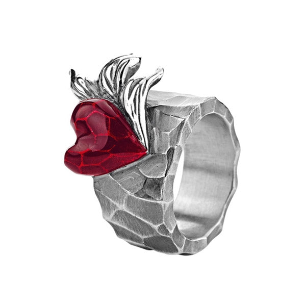 Flammeninferno großer Ring aus Silber mit rotem Brandlack