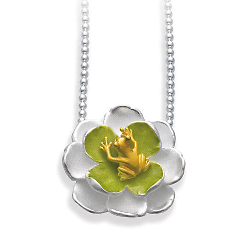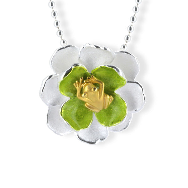 Frühlingsgefühle großer Anhänger aus Silber mit grünem Brandlack und goldplattiertem Frosch