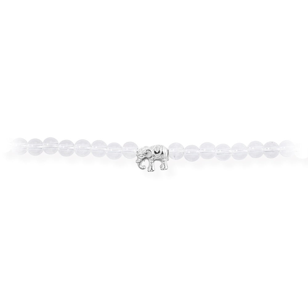 Ganesha, Bergkristall Collier mit einem Elefanten Durchzieher, schönen Endkalotten, stabilem Karabiner und Verlängerungskette aus Silber.