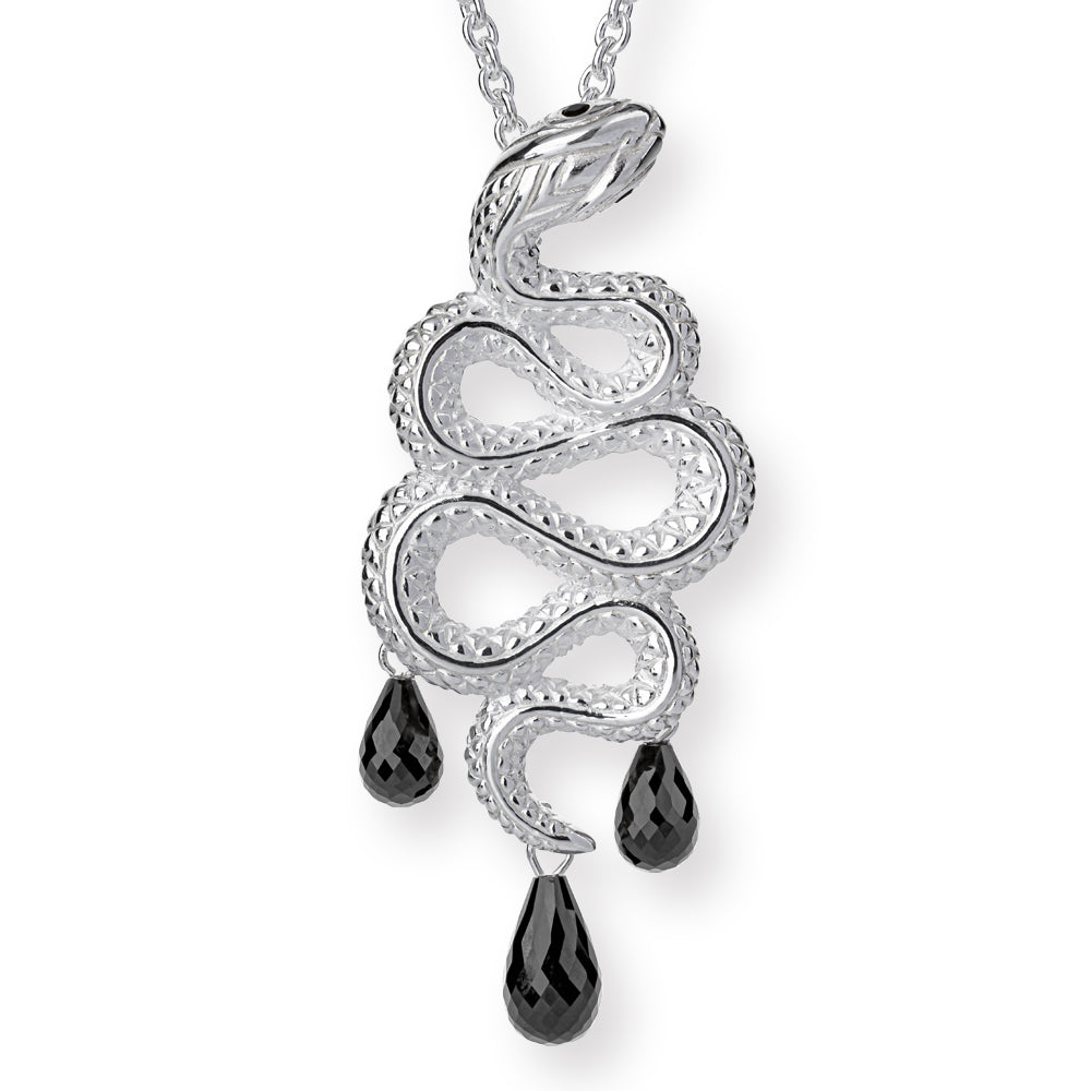 Serpente, großer Anhänger Schlange aus Silber mit Onyx und Onyxpampeln.