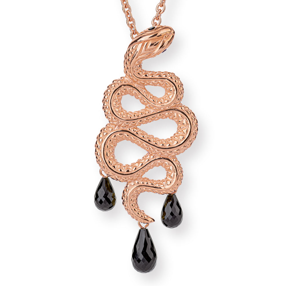Serpente, großer Anhänger Schlange aus Silber rotgoldplattiert mit Onyx und Onyxpampeln.