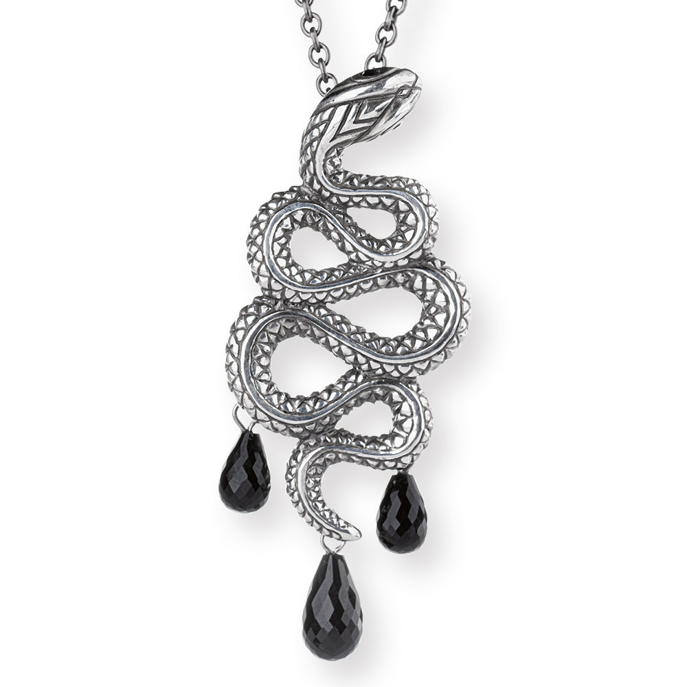 Serpente, großer Anhänger Schlange aus Silber im Vintagelook mit Onyx und Onyxpampeln.