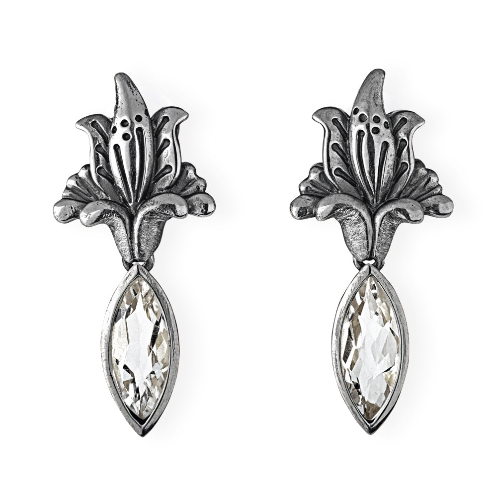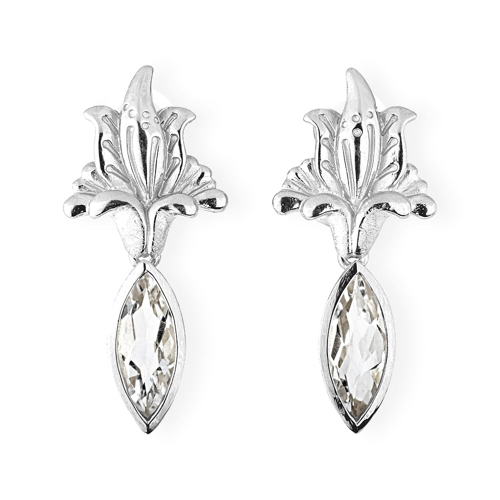 La Belle Epoque Blüten Clipohrstecker aus Silber mit Bergkristallnavette